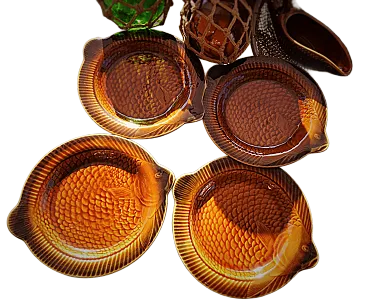Mid-Century Majolica Brown Fish Set of 4 Plates by Sarreguemines, 50s