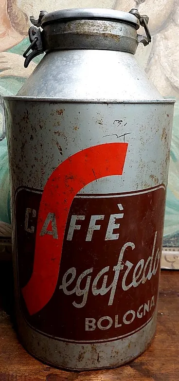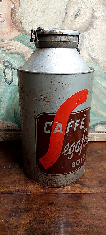 Aluminum coffee canister Segafredo advertising, 20th century