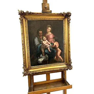 The painting depicts one of the most beloved subjects in the Christian painting tradition: the Holy Family with the little Saint John the Baptist (the so-called “Giovannino”).