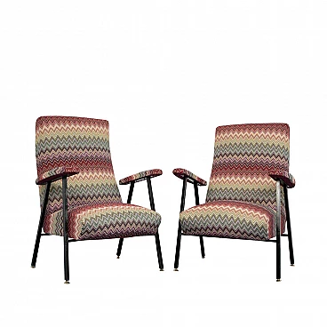 Set 2 armchairs. Black metal structure with brass inserts. Completely upholstered with Missoni fabric. Design years '60. Vintage item in excellent condition, slight signs of time, as per photo.