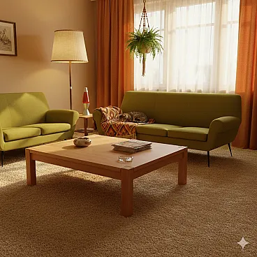 Beech wood center table and plywood top, 20h century