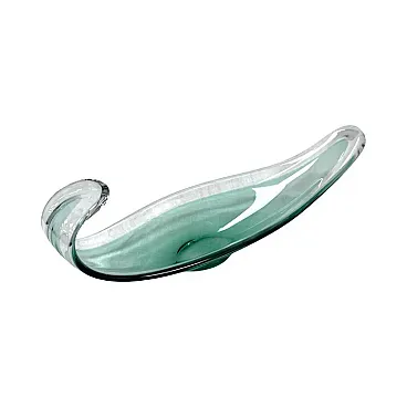 - The platter features a dynamic, undulating form with raised edges, showcasing smooth color transitions in shades of green and transparent, typical of the era's design.