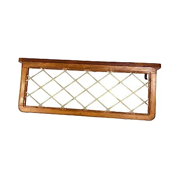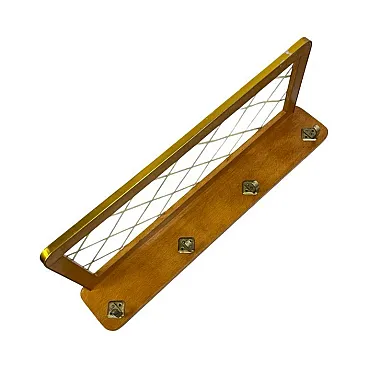 The item is in very good vintage condition. The wooden structure is stable and aesthetically pleasing, and the mesh on the shelf remains complete and properly tensioned. Only the noble, natural patina is visible on the metal elements, confirming the age and authenticity of the design.