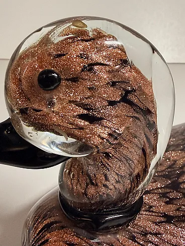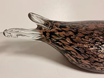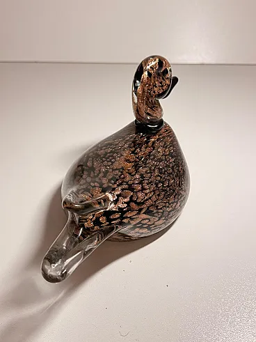 Made in Italy, 1970s. This duck is made in black Murano glass with aventurine, encased in transparent glass, which was hand-modeled. It is a vintage piece, therefore it might show slight traces of use, but overall it can be considered as in excellent original condition and ready to find a new home. Measurements: Width 30 cm Depth 14 cm Height 15 cm. Order it now! We sell the best quality pieces and we offer an amazing service: if it's not during night time, we answer within 2 hours and we absolutely love to follow every step of the purchase and even after. As matter of fact we really appreciate our customers' feedback and when we receive pictures of our pieces in their new homes. We assist you during the process and answer all your questions. In addition to this, we always review the pieces before shipping, so that you receive the goods at its very best. We provide the best possible quotes and professionally and carefully pack the items. Insurance is included. And if there is any issue, it is our mission to make sure you don't have to worry: we will always be there for you to assist in any way possible.