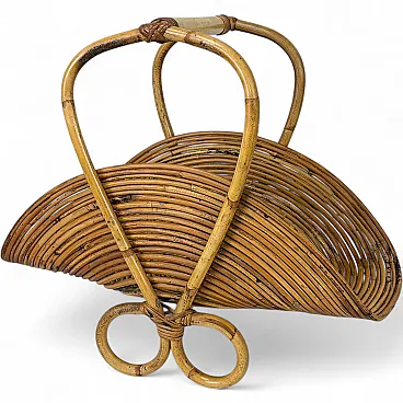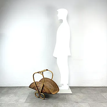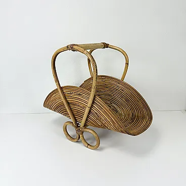 Rush wicker magazine rack from Vivai del Sud, Italy, 1970s