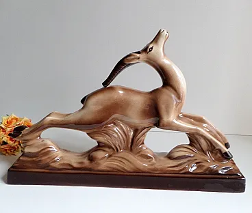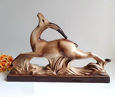 Art Deco Ceramic Antelope Gazelle Sculpture, 40s