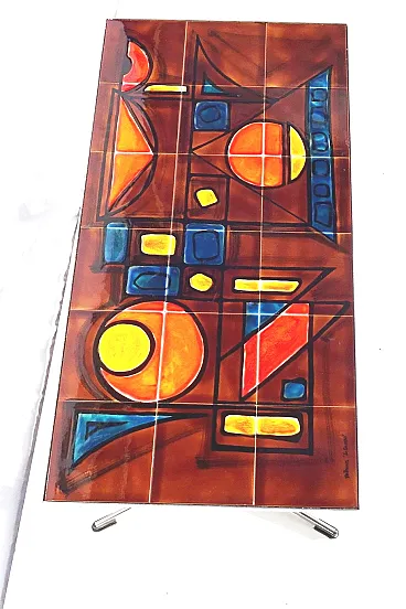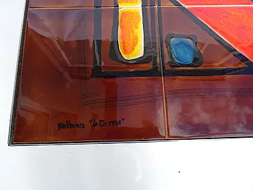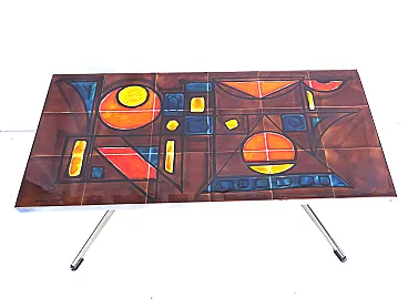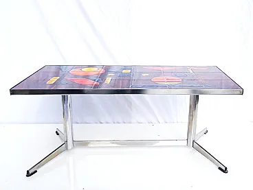 Vallauris coffee table ceramic tiles chrome base signed La Grange, 70s