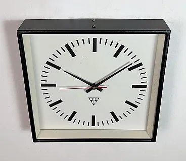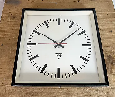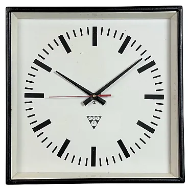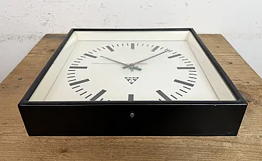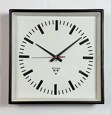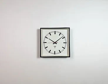 Black Industrial Square Wall Clock from Pragotron, 1970s