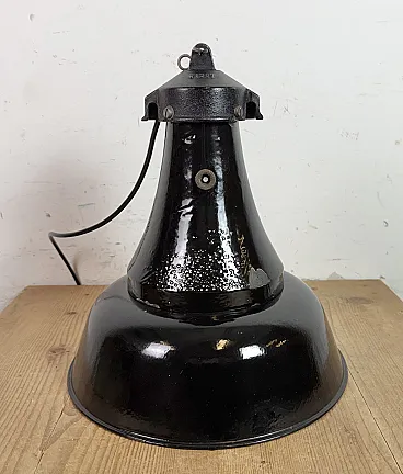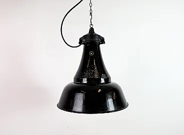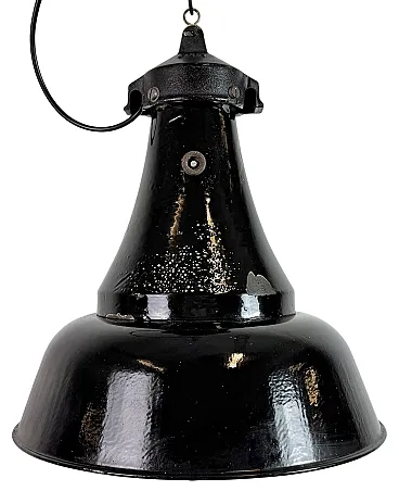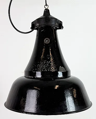 Industrial Black Enamel Bauhaus Pendant Lamp, 1930s