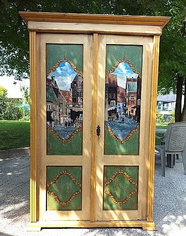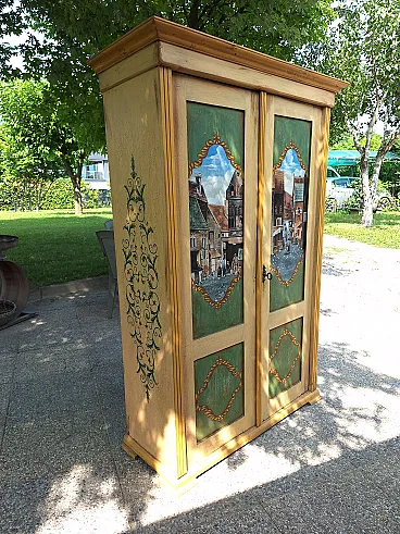 Austrian painted wardrobe with polychrome decorations, 19th century