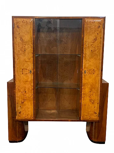 Showcase art deco elm burl tuja profiles ebony maccassar, internally finished, ovalized doors at the edges, brass hardware. Excellent condition, ready for insertion. Packing in wooden cages