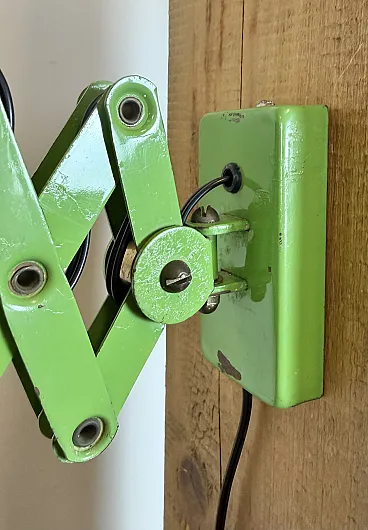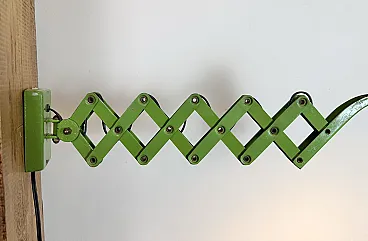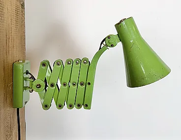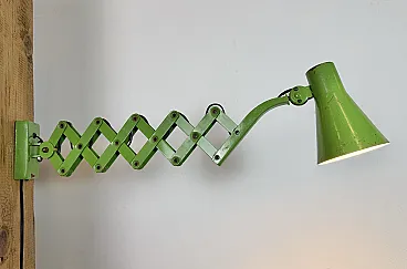Green Industrial German Scissor Wall Lamp from Kaiser Leuchten, 1960s