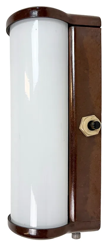 Industrial Brown Bakelite Wall Light with Milk Glass, 1950s 1