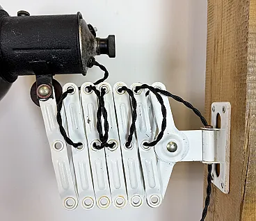 Industrial Black Enamel Scissor Wall Lamp, 1950s