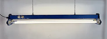 Blue Industrial Hanging Tube Light, 1970s