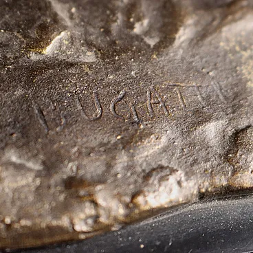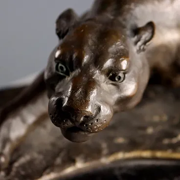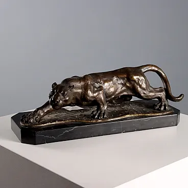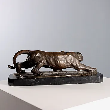 Bronze statue of a lurking tiger on a marble base, 20th century
