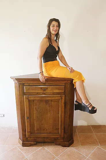 large antique Venetian corner cabinet in solid elm oak 18th century