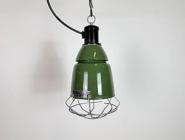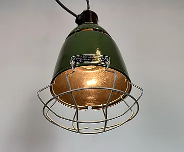 Industrial Green Enamel Cage Pendant Lamp from Philips, 1960s