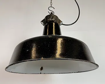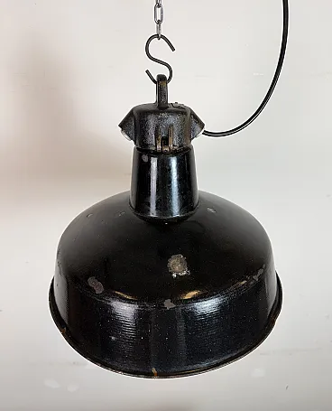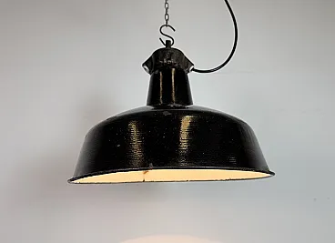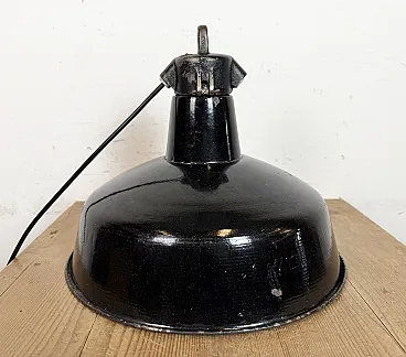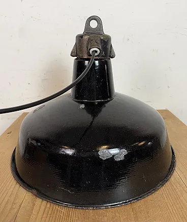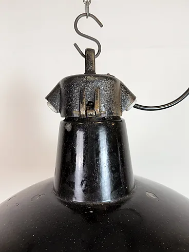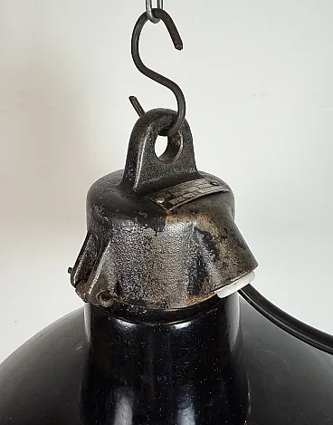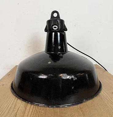 Industrial Black Enamel Factory Lamp with Cast Iron Top, 1950s