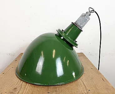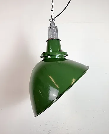 Large Industrial British Green Enamel Factory Pendant Lamp from Benjam