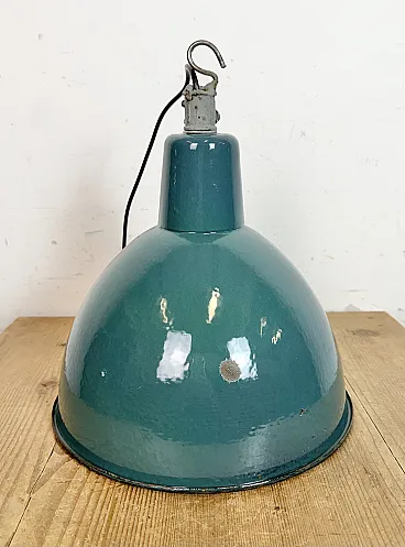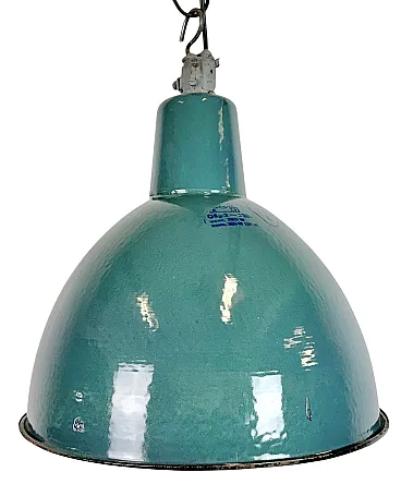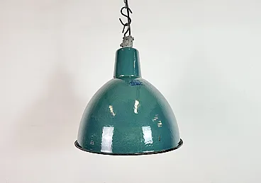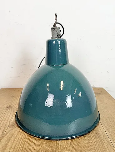Industrial Petrol Enamel Factory Pendant Lamp, 1960s
