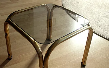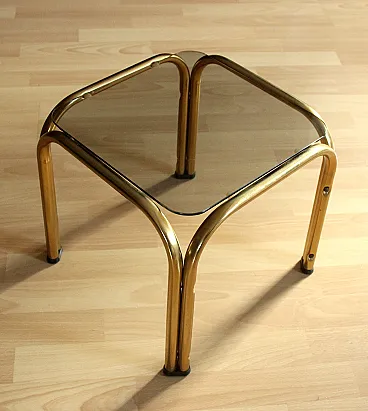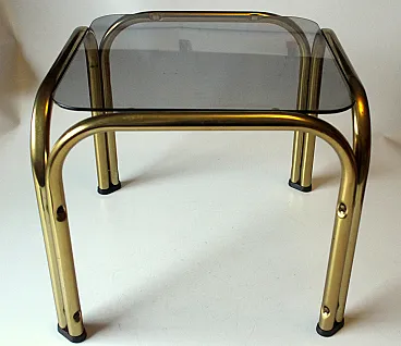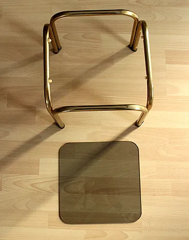 Brass side table plant stand with a smoked glass plate, 70s