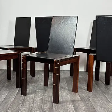 The wooden structures of Rosewood, with clean and rigorous lines, express all the modernist aesthetics of the decade: solid volumes, balanced proportions and linear details that embellish the legs with subtle decorative inserts. The warm shade of the wood creates a refined contrast with the seats and backrests covered in black leather, smooth and textured, which give elegance and comfort.