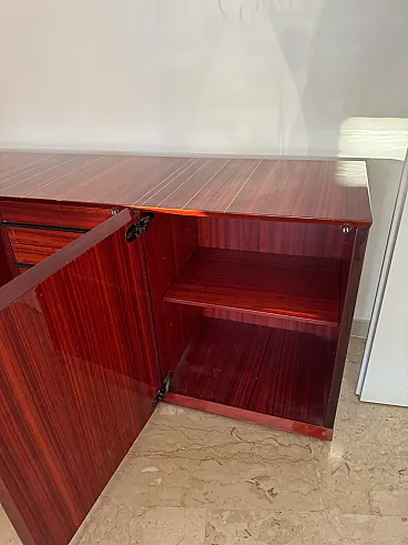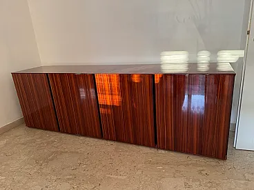 Monumental rosewood sideboard, made in Italy in the ’70s, a refined example of the craftsmanship and elegant design typical of the period.