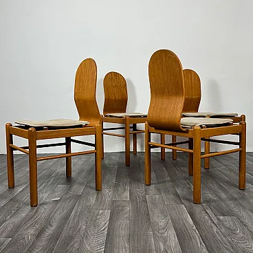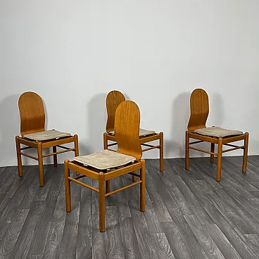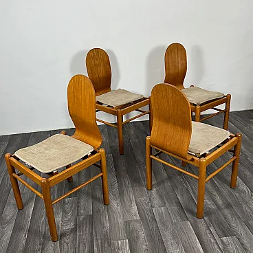 Set of four dining chairs in Scandinavian style years ’70, characterized by clean lines, balanced proportions and a warm wooden essence that enhances the environment with natural elegance.