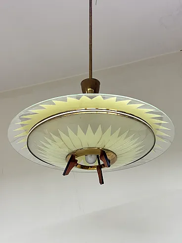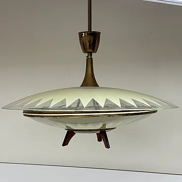 Glass and teak pendant lamp, 1950s