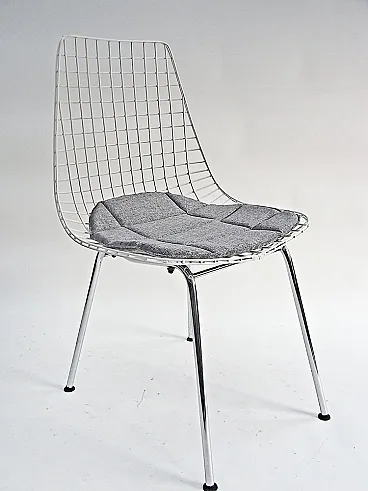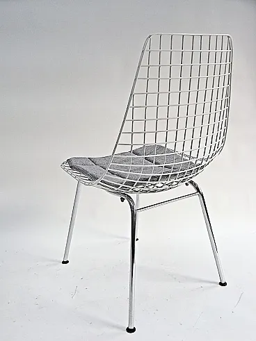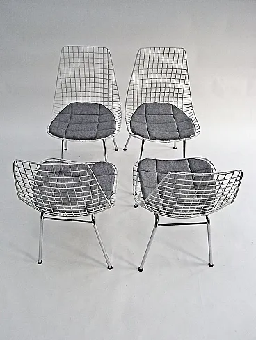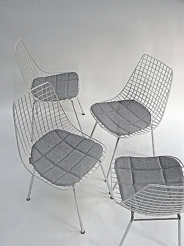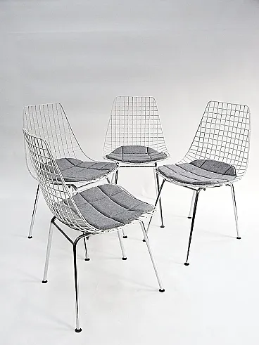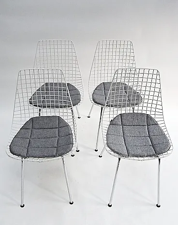 4 Wire chairs in chrome and white steel mesh, 20th century