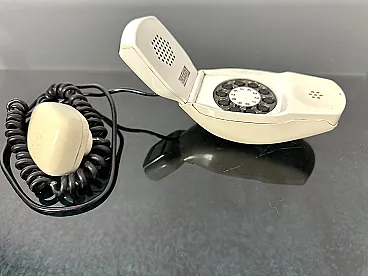 The telephone is the iconic Grillo model, a masterpiece of Italian design designed in 1965 by Marco Zanuso and Richard Sapper for Italtel and distributed by SIP. It was one of the first phones in the world with a clamshell opening system, a solution that anticipated the design of the first mobile phones by decades. It is an extremely compact and lightweight device, characterized by a receiver that integrates both the microphone and the dial. Thanks to its revolutionary aesthetics, it won the Compasso d'Oro award in 1967 and is exhibited in the permanent collection of the MoMA in New York. PERFECT CONDITIONS Measurements: Width 17 cm - Height 7 cm - Depth 8 cm