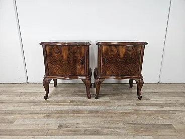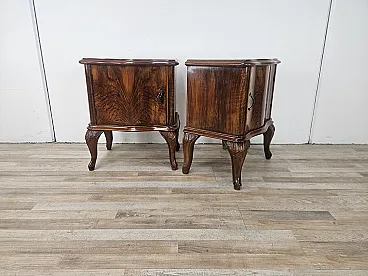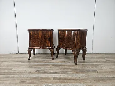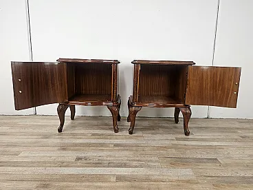 Chippendale bedside tables with curved doors and carved legs, 50s