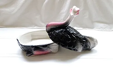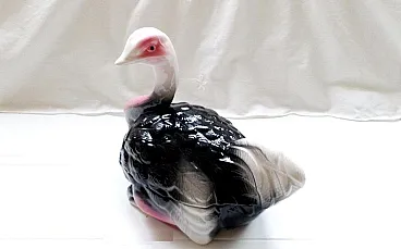 Ostrich Pate Dish Faience Terrine Pink, White and Black 70s