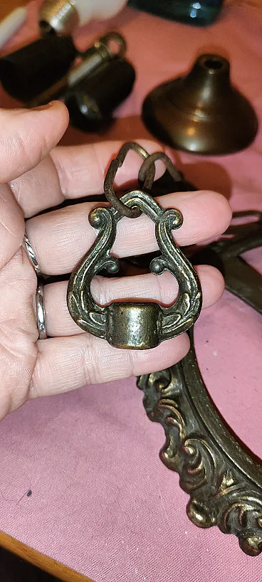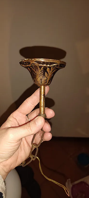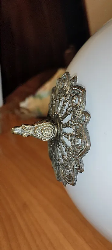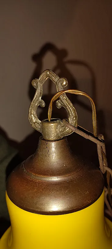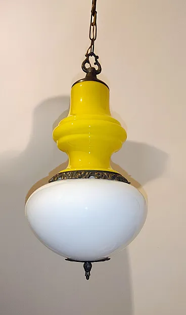 Pendant lamp in opaline glass and brass. Italy, 60s
