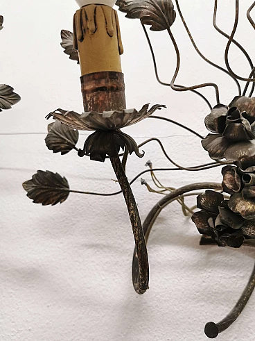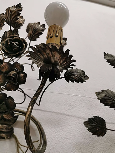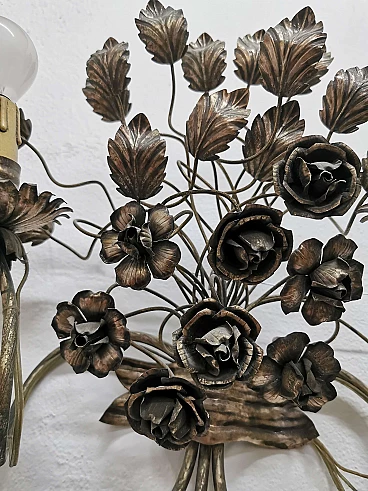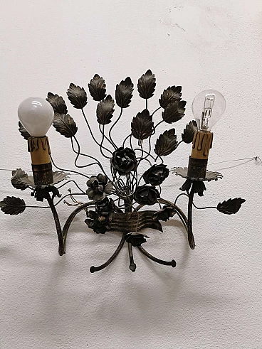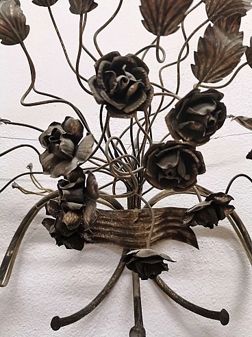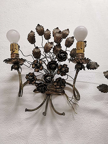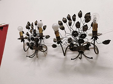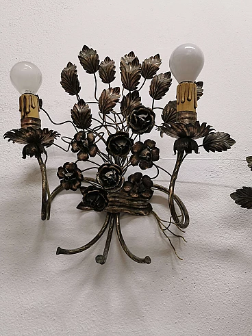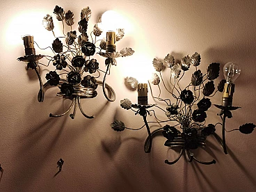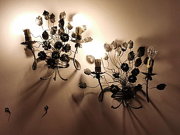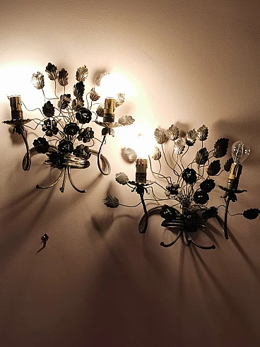 Pair of floral sconces in handcrafted silver plated iron, 50s