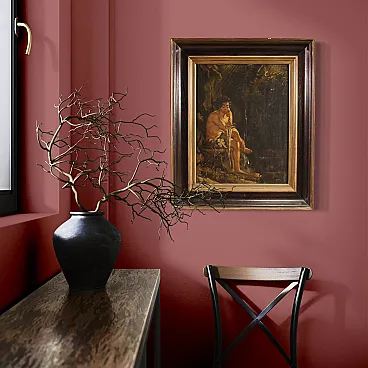 A work that takes inspiration from the beautiful painting Saint John the Baptist meditating in the desert from the end of the 16th century, exhibited at the Pinacoteca Nazionale in Siena and reproduces the engraving by Calude Mellan (1598-1688), famous French engraver and painter.
