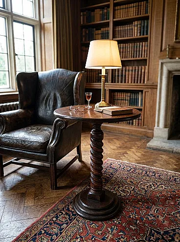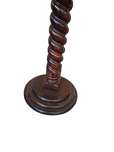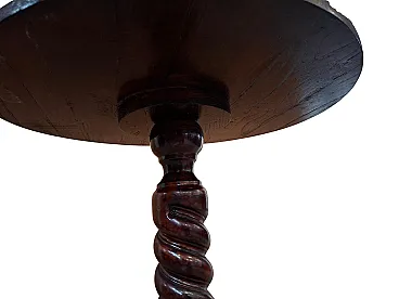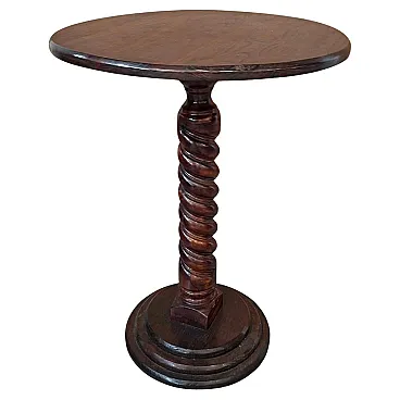Beautiful round coffee table, made entirely of solid ash wood during the 90s. A piece of furniture that combines classic craftsmanship with a sleek and elegant line. The strong point is the splendid central shaft with a twisted column (helical work), entirely hand-carved, which rests on a solid circular stepped base. The ash grain is clearly visible and enhanced by the warm hue of the wood, making it perfect for both classic environments and vintage/rustic corners. Product Details: Material: Solid ash wood. Style: Carved, twist column. Period: 90's. State of conservation: Excellent vintage state, solid and well cared for. Measurements: Height: 67 cm Flat diameter: 50 cm Weight: approximately 4 kg (very easy to handle but stable). Ideal as a coffee table, lamp or plant stand, or as an elegant foothold in an entrance hall.