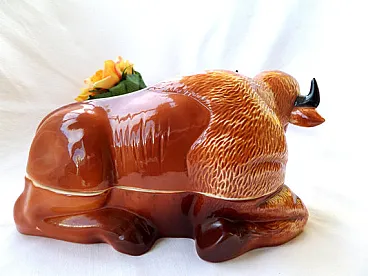 Bison Pate Dish Faience Terrine Brown, 70s