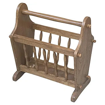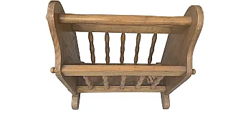 Add a touch of warmth and character to your home with this stunning vintage magazine rack. Made of sturdy wood with classic turned columns, it is the perfect accessory for those who love vintage, rustic or Arte Povera style. Why choose it? Versatile: Perfect for organizing magazines, newspapers or –for music fans– as an elegant display for the vinyl collection (LP 33 rpm). Practical: Equipped with a solid top handle for easy movement wherever you like. Timeless Design: The natural wood grain and sleigh structure make it a solid and charming piece of furniture. 📏 Dimensions and Details: Width: 45cm Height: 48cm Depth: 24cm Weight: 3kg (very stable but lightweight to carry) Status: Excellent vintage condition, intact structure and well preserved wood.