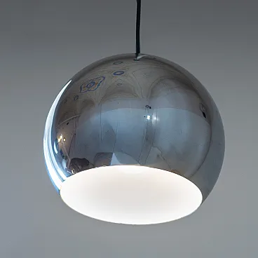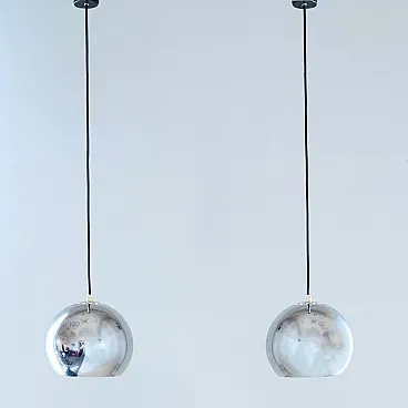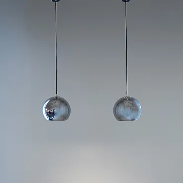 Refined and elegant pair of "Eyeball" pendant lamps, designed by Goffredo Reggiani for the family business in the 1970s, these lamps represent the bold and futuristic aesthetic of the 1970s and the space age school.
