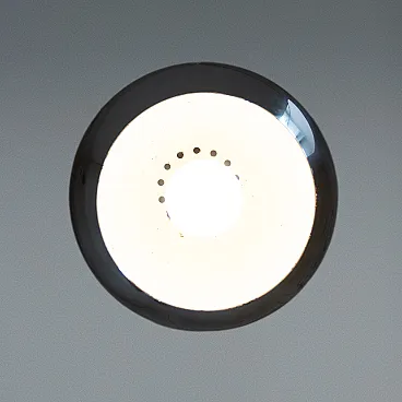 Made entirely of chromed metal, the lamps feature characteristic micro-perforations in the upper part which allow a sophisticated bidirectional light flow, projecting a soft light upwards and targeted illumination downwards.