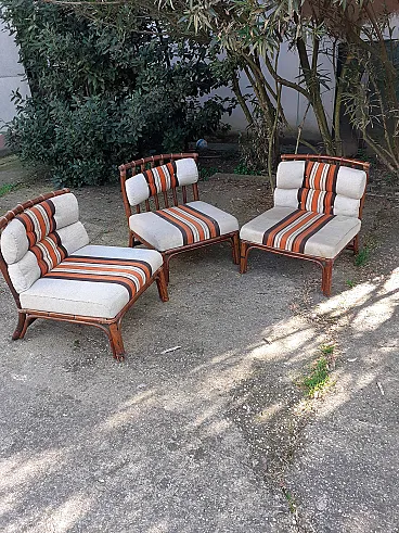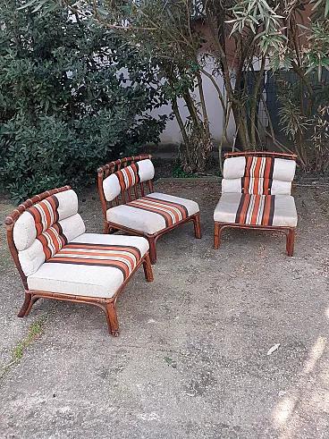 3 Bamboo armchairs, 70s