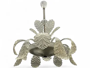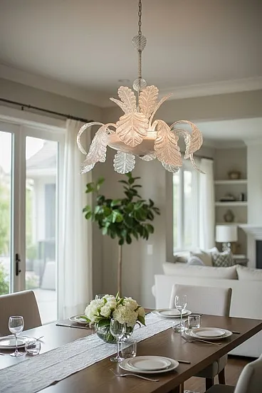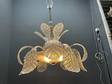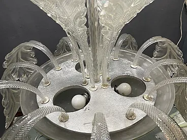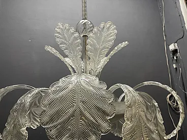 Large Murano Glass Leaf Chandelier by Barovier & Toso, Italy, 1950s Stunning Italian chandelier from the 1950s attributed to renowned Murano glassmaker Barovier & Toso. The piece features beautifully sculpted hand-blown Murano glass leaves, arranged in an elegant cascading composition around a central bowl. Each leaf features a delicate texture and subtle iridescent properties that softly reflect and diffuse light, creating a luminous and refined atmosphere when illuminated. The organic leaf pattern and flowing structure are characteristic of mid-century Murano craftsmanship, which combines artistic glasswork with timeless Italian design. Suspended from a decorative Murano glass stem and rosette, the chandelier creates a sculptural focal point suitable for living rooms, dining rooms or sophisticated entryways. The chandelier was recently rewired and is ready for installation. Details • Manufacturer: Attributed to Barovier & Toso • Origin: Murano, Italy • Period: 1950s • Materials: Murano glass • Finish: Clear glass with iridescent hues • Lights: 3 • Bulbs: Requires E27 bulbs • Wiring: Newly installed Dimensions • Height: 100cm • Width: 75cm Condition Excellent vintage condition with minor signs of wear consistent with age and the use.
