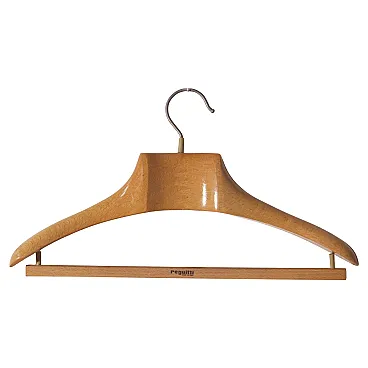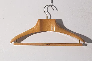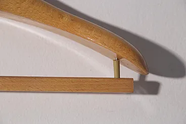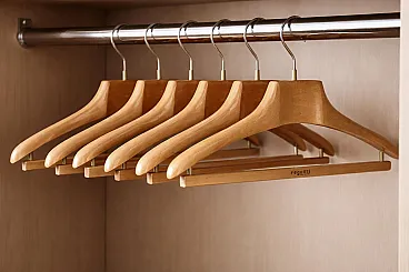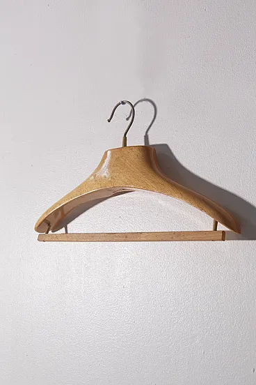 Vintage Italian Hangers – Fratelli Reguitti, 1960s Timeless elegance and authentic Italian design. These refined vintage hangers by Fratelli Reguitti, dating from the 1960s, represent a beautiful example of the craftsmanship and quality that made the brand renowned in the world of wooden accessories. Crafted from fine beechwood, they feature smooth, harmonious lines that combine functionality with classic aesthetic appeal. The structure is complemented by a metal bar, solid and elegant, designed to ensure durability and practicality. Each hanger is branded with a burned-in mark, an authentic detail that confirms their originality and heritage. All pieces are in excellent condition, making them perfect not only for everyday use but also for collectors of vintage Italian design or for enhancing boutiques, wardrobes, and displays with a refined retro touch. A small object with a great story — a true fragment of Italian elegance from the 1960s.