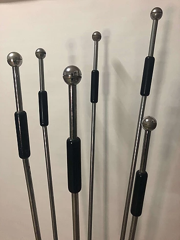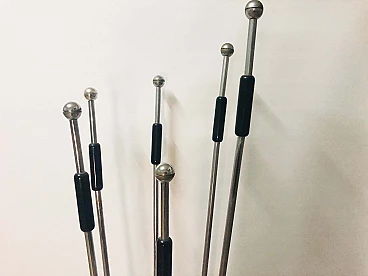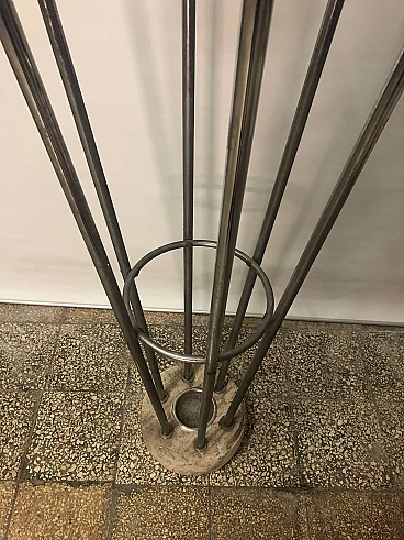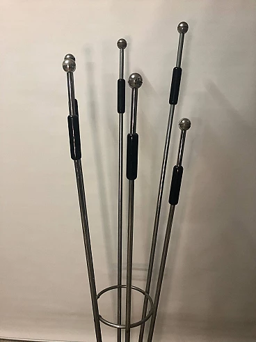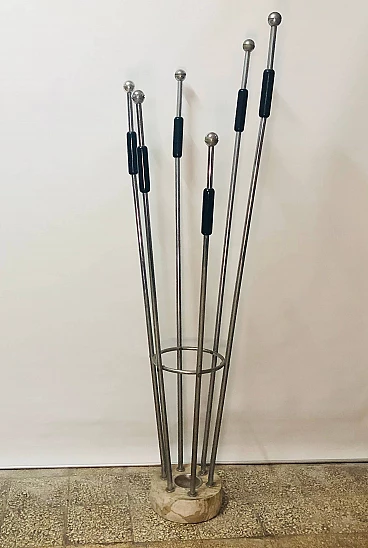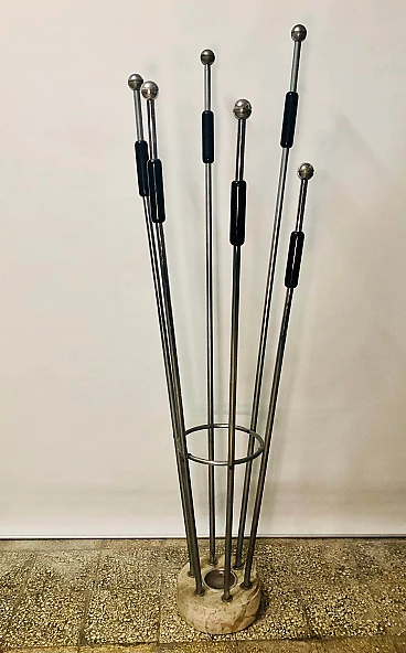 Coat stand in steel, wood and travertine base. Six arms and central umbrella stand. Very good condition.