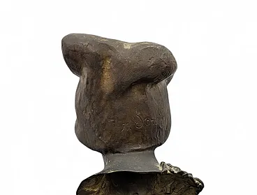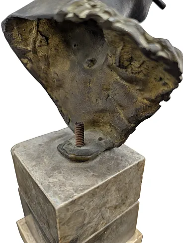 The fusion presents a wavy and material surface, with a dark patina that accentuates the contrasts of light on the features of the face. The work rests on a base of veined marble blocks which, unfortunately, shows some signs of aging and missing edges. On the back of the neck the signature of Achille D'orsi engraved in bronze is visible, while the hollow structure of the bust is fixed to the base via a central threaded pin.