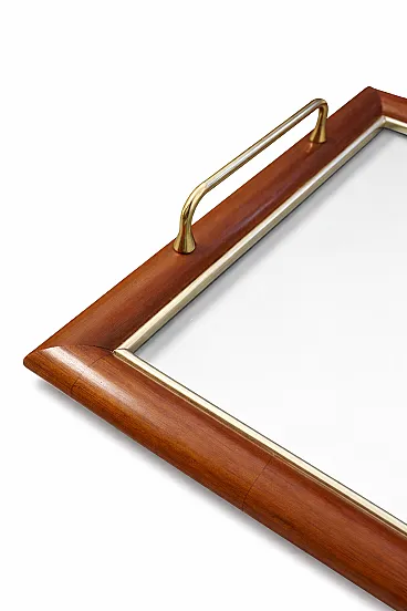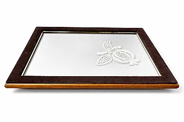 Wood and glass tray with brass handles - elegant mid-century / modern style, featuring an elegant and timeless design. The glass top is embellished with a delicate decorative motif in Cantu' lace, which adds a refined and original touch. Perfect both as a serving tray and as a decorative element for a coffee table, kitchen or living room. Length 33.5 cm, width 24 cm, height 2 cm without the handles.