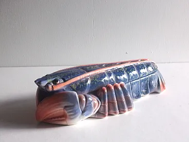 Rare Large Lobster Faience Terrine in Pink and Blue, 70s