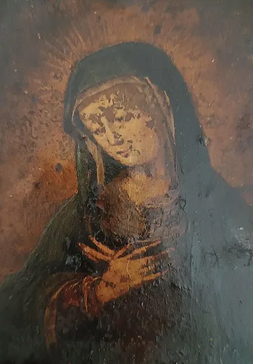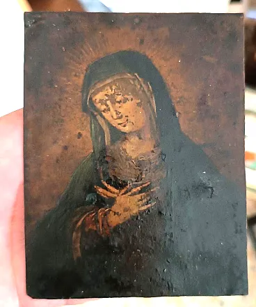 The painting is a work of devotion, an oil on copper, representing the Virgin Mary of Sorrows.